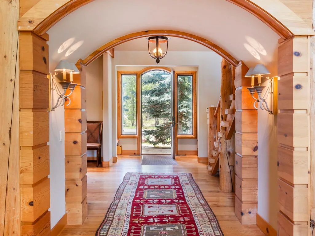 Custom log homeFabulous indoor-outdoor livingPanoramic windowsGourmet kitchen