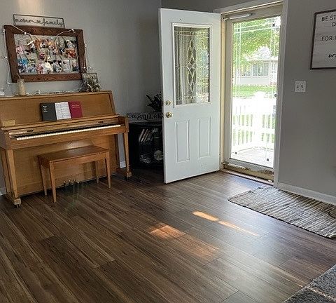 Cheerful, bright ranch style home that is move in ready! New laminate flooring throughout with brand new plush carpet in both bedrooms. All rooms have a fresh coat of paint. Second bedroom has a beautiful barn wood wall. Updated bathroom. Kitchen is updated with painted cabinets and new door handles, beautiful backsplash, and faucet. Newer countertops. All appliances stay including new refrigerator. New ceiling fan and lighting in kitchen and bedroom 2. Extra shower/sink in basement. Storage shelves in basement. Roof updated in 2018. Wonderful back yard is ready for fall weather with a beautiful fire pit. Mature peach tree in back yard. New landscaping, new gravel in drive, raised garden, and 5 x 8 shed round out this pleasant property.