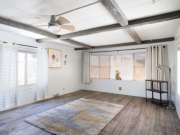 This beautiful single wide home has been lovingly updated with new flooring throughout the home, fresh paint, a new A/C, solar screens for the windows, a beautiful granite kitchen sink and Moen faucet, new ceiling fans and lighting and thermal black out blinds. There is also a perfect movable kitchen island that comes with the home! This 2 bedroom gem must be seen to appreciate its charm.
