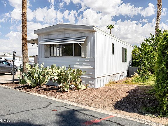 FREE LOT RENT UNTIL 2026! This beautifully updated 2 bedroom, 1 bathroom manufactured home is located in the desirable 55+ community of Safari Mobile Home Park in Casa Grande. The home has been thoughtfully remodeled to maximize open-concept living and features new appliances, a new HVAC system, fresh interior paint, new window blinds, updated light fixtures, and laminate oak wood flooring throughout. The bathroom has been fully refreshed from top to bottom.