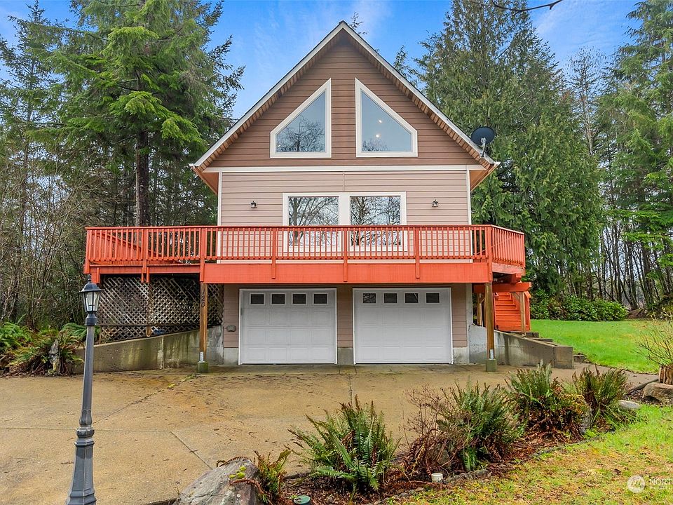 This charming 2 bed 2.25 bath home in the Star Lake Community located on the outskirts of Elma & Shelton, approximately 25 min from both. Boasting a paved driveway, high ceilings adorned with rustic wood beams, open concept, attached 2 car garage, and a delightful wrap-around deck. The loft overlooking the living room would make the perfect office/rec room. Nestled amidst natures beauty with a small backyard, this cozy home invites you to relax and unwind. The Star Lake Community offers lake access, golfing, and playground adventures just steps away. Close to a convenient store and bar/restaurant.
