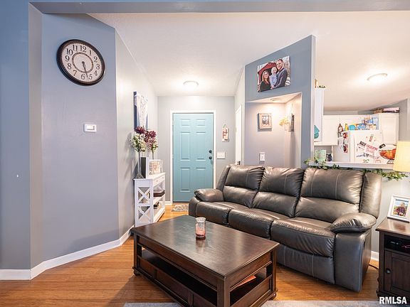 Discover this charming move-in ready 3-bedroom, 2-bathroom ranch-style home with an oversized 2-car attached garage and a fantastic backyard! The open floor plan creates a seamless flow with elegant and easy-to-maintain hardwood floors in the living room, kitchen, and dining areas. The fully equipped kitchen offers ample cabinets and counter space, with convenient deck access. This home features three spacious bedrooms; the primary bedroom boasts a walk-in closet and a full bath. Step outside to a huge, level backyard with a relaxing deck that overlooks a park-like setting. The backyard even includes an above-ground pool and a chicken coop if desired! This property offers the perfect blend of comfort and convenience in a superb location in the peaceful Spaulding neighborhood, just minutes from I-55. Schedule your showing today!