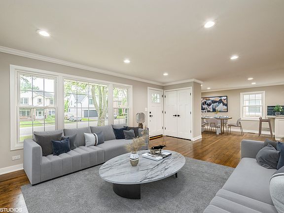 ~STUNNING + SUPER SPACIOUS~ Much bigger than meets the eye at 1st glance. Newly and Extensively Updated in Glenview's highly desirable "Park Manor" area. This home showcases a brand-new kitchen with crisp white cabinets, quartz counters and premium LG appliances. You'll love this open concept main level with kitchen flowing into a dedicated dining space and a great family room complete with a new remote controlled direct vent gas fireplace surrounded by built-ins and oversized windows. A stunning four-season room provides year-round enjoyment with a sliding door to the new brick paver patio and spacious yard. The main level offers a large bedroom and full bath. Upstairs, discover three additional bedrooms, including a luxurious primary suite with a walk-in closet and an amazing en-suite bath featuring a double vanity and huge glass shower. Another full hall bath and second-floor laundry complete this level. Yes 3 bedrooms, 2 full baths, and even laundry all on the 2nd level. The finished basement includes a large entertainment room with a modern exposed black painted ceiling and new plank flooring, a 1/2 bath, 2nd laundry room, and even an unfinished storage room with large window, perfect to finish off as a bedroom, office or fitness room. A brand new asphalt side driveway leads to a detached 2.5-car garage. New Kitchen. New Bathrooms. Freshly painted throughout. New 50 Gallon water heater. New AC. New Windows. Updated copper plumbing. New Electric panel. Ultra convenient location to Hoffman Elementary School and amenity filled Johns Park, steps down the secret path to Park Manor's own "Manor Park", easy access to the Glenview and Golf train stations and Downtown Glenview featuring tons of great restaurants with several new restaurants in the works, an awesome library and so much more. Glenview 34/225 schools-Henking, Hoffman, Springman & Glenbrook South. Come see for yourself and make this home yours, before someone else does. ~Welcome Home~