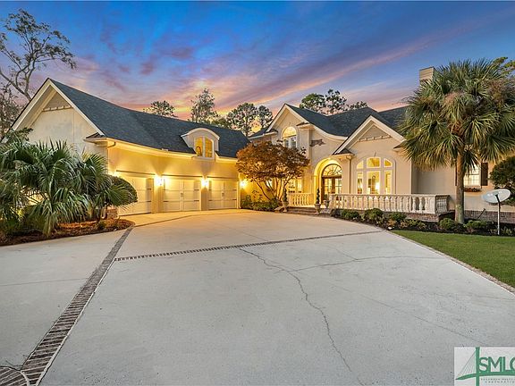 Experience a lifestyle of casual elegance, where every day feels like a getaway! Nestled in Moon River in The Landings, this private and beautifully landscaped property blends French flair with Low Country charm. Featuring 4 bedrooms, 4.5 baths and a custom built kitchen with a large island, it offers a spacious master suite conveniently situated on the main floor, all protected by a 1 year old roof. Enjoy the screened porch and a 3-car garage, with an oversized bay for boat storage. The open floor plan, filled with natural light, boasts 2 fireplaces, wood-burning & gas, and opens to your own secluded tropical oasis. The backyard features a sparkling custom saltwater pool with hot tub and expansive travertine terrace, perfect for entertaining and relaxing. Plus, there’s a large walk-in attic space that could be converted into additional living. Located just a golf cart ride away from resort style amenities. ASK FOR SELLER'S FEATURE/IMPROVEMENT SHEET! 3D tour available!