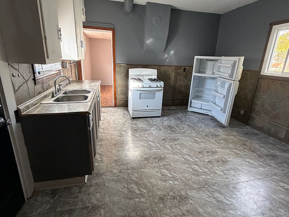 Small fenced in yard, driveway parking, washer dryer hookups in basement, private attic for storage. Includes fridge and stove, water and garbage
