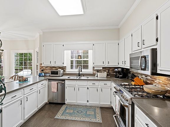 Charm & Tradition in Forest Hills - The country is right outside your door from this beautiful 2,616 approx sq ft two-story home on a lovely private lot. 4 spacious bdrms, 2.5 baths, bright & sunny kitchen with bar and breakfast nook, gorgeous formal dining room and spacious living room with cozy fireplace. Flowing floorplan with beautiful plank flooring, large windows and soothing paint colors. Updates include: NEW concrete driveway 2023, NEW Exterior door 2023, NEW Vinyl siding and wrapped soffits 2023, NEW windows 2023, NEW gutters 2023, NEW outlets, switches, light fixtures and blinds 2023, NEW interior paint 2023, NEW vinyl planked flooring in den 2021. 2-car garage and private fenced backyard. For the family who wants to get away from it all, but not too far.