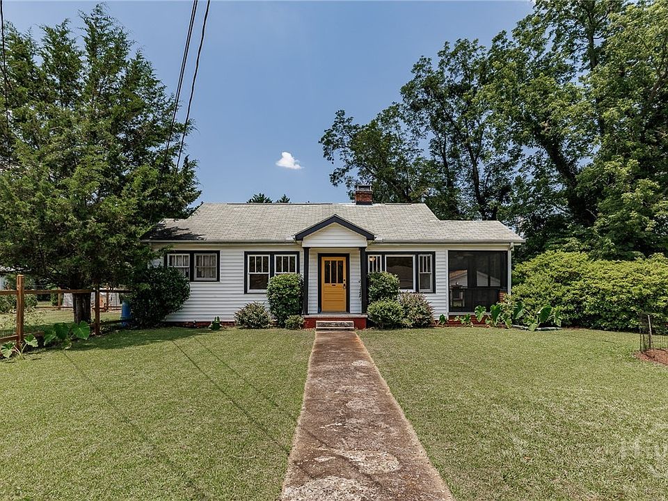 Don't miss this adorable, renovated cottage on the Eastside! A perfect blend of yesteryear's charm with original hardwood flooring throughout, arched casement doorways, masonry fireplace, plus a fully renovated kitchen and bath! Every room is flooded with natural lighting cast from double windows. The living room has a cozy feel and has access to a private screened porch. Kitchen features stainless steel appliances, granite countertops, and multiple windows with views of the fenced garden area. Two bedrooms share a central, updated bathroom, and there is a spacious laundry area. Many plantings have been added throughout the yard for privacy and curb appeal. Detached garage with new roof has a workshop and storage area. Located just about as close as one can be to the UGA Veterinary Teaching Hospital, new Kroger, and Eastside dining options.