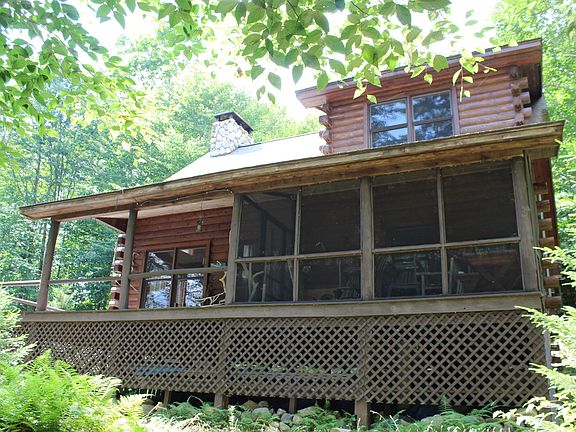 Beautiful cedar log house located on Woodhull Lake, with 365' of frontage and your own private dock. The parcel is 17.2 wooded acres and borders state land behind. Enjoy views of the lake from the house and porches, including a screened in porch area. The spacious interior includes cathedral ceilings, a stone fireplace, a wood burning stove, open kitchen design, rustic twig railings, as well as two bedrooms and a full bath. This house is set up with well designed systems, such as gravity feed water, a remote start generator and solar powered lights. Other amenities include a separate workshop building, a shore house for water accessories and a wine cellar. Access to this property is by a private dirt road (permit required) and by boat across Woodhull Lake, approximately two miles.