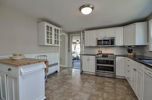 Bright, cheery 3 bedroom plus nursery, 2 bath updated home in a close to everything location! Steps away from Perry Park,4/10 of a mile to Mitchell Elementary less than 1 mile from Pollard Middle, Needham High, Needham Center and the commuter train to Boston! Home is in picturesque, quiet neighborhood with great curb appeal. Updated eat-in kitchen, granite counters, gas heat, central air, large enclosed porch, spacious dining room, sun filled living room with fireplace, patio, finished walk out basement, ample storage space. Full bath on first floor - great option for company!! Garage with extra room for storage. Unpack and enjoy this completely move-in ready home on large corner lot. Don't miss it, this amazing deal won't last. Great opportunity to get into this town with highly rated schools and recently ranked one of the safest cities to live in, in the entire U.S.!!