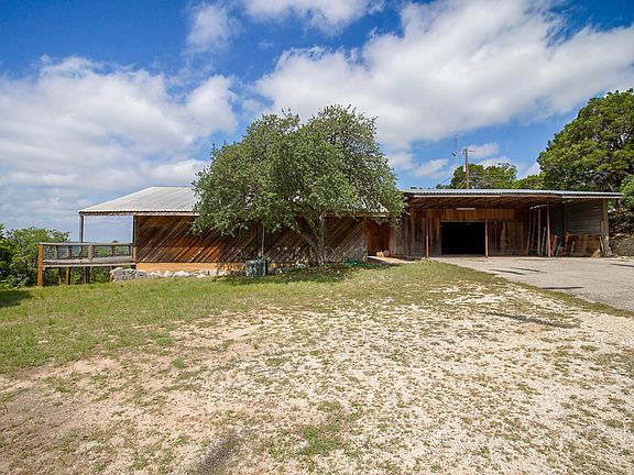 Beautiful property with an amazing view from your living room or master bedroom to the hill country! Enjoy the gorgeous deck while creating new memories! This 3 bedroom 2 bath style cabin has all you need! Great kitchen, several upgrades and a great garage for all your tools and equipment. Has 2 space car port and 7.9 acres! Don't miss out the video on this property! Can't miss this opportunity!