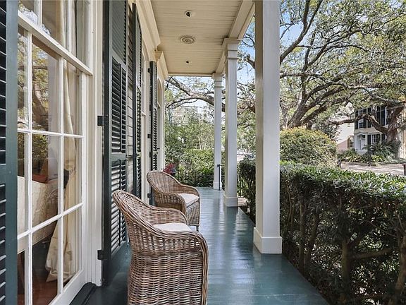 Meticulously maintained classic New Orleans home in the Garden District on fabulous corner lot. Stunning architectural features: inviting front porch, 12 ft ceilings, wood floors, beautiful windows, wood shutters, medallions and crown molding. Light-filled formal living and dining rooms, library with custom shelving, well-appointed kitchen with Viking range and stainless steel appliances. Detached structure has laundry, bath & storage. Beautiful courtyard. Carport/ garage with electric gate from Camp St.