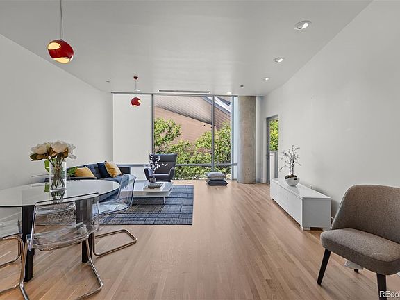This fully refreshed modern condominium exudes contemporary simplicity as it sits amongst the tree-lined Denver Art Museum Plaza, almost feeling like you’re in a treehouse. Plus the location allows for the enjoyable sounds of the splashing water from the multiple fountains below. This right-size one-bedroom flat provides smart living beginning with an entry which seamlessly flows into the open entertaining space giving into an ample kitchen with a functioning island for prep or entertainment to a dining area that separates the living space which also includes an outdoor deck. Storage is imminse from the foyer double closet to the storage space off of the kitchen which is large enough to double as a pantry and storage facility along with the washer/dryer closet situated right next to it. The bedroom’s capacity is great enough to warrant side tables, dressers, or even a sitting space, while still having an ample walk-in closet with built-ins for easy organization.