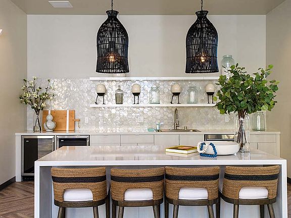 - Exterior features: Barbecue, Basketball Court, Bocce Court, Conference Room, Detached Garages (available with certain units), E-Lounge, Gourmet Outdoor Kitchen, Honeywell T5 Smart Thermostats and Smart Locks, Horseshoe Pits, Kitchen Island *, Luxury Pet Spa, Pet Park, Pickleball Court, Quartz Countertops, Rooftop Deck, Spacious Closets *, Sundeck, Yoga Room