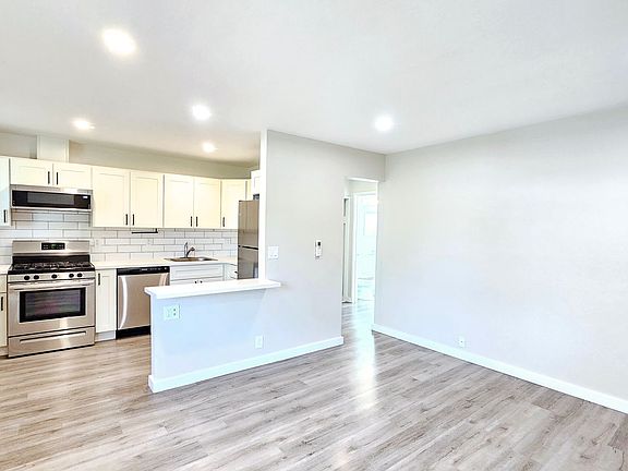 This sunny top floor corner unit has been fully remodeled, designed to make you feel at home in no time! The beautiful gourmet kitchen features stainless steel appliances (including dishwasher!), quartz countertops and breakfast bar. Bedroom includes a floor-to-ceiling mirrored closet and ceiling fan. Remote controlled AC/Heat to keep the temps to your comfort. Modern can lighting and engineered hardwood flooring throughout.