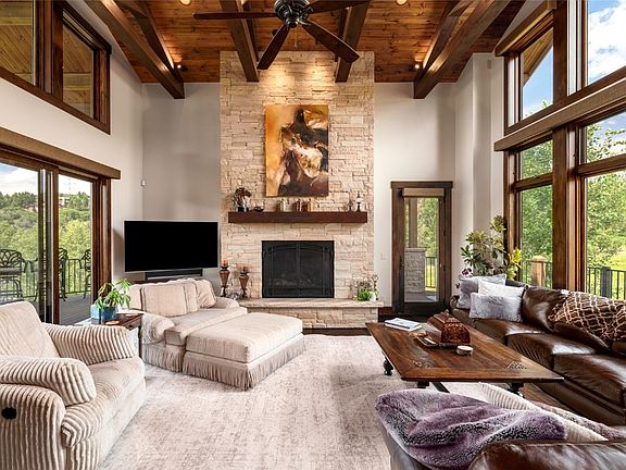 Perfectly positioned on one of the most desirable lots in Steamboat’s exclusive Fish Creek Meadows neighborhood, this stunning 4,830 SF custom home offers an exceptional blend of privacy, luxury, and convenience. Completed in 2018, the 4BR, 4.5BA residence is built to uncompromising standards and rests on a 2.3-acre lot adjoining the 68-acre Rita Valentine Park—providing protected views of the Steamboat Ski Area and Emerald Mountain while offering the feel of a much larger estate. The great room impresses with soaring 20-foot cathedral ceilings, a striking dry stack sandstone fireplace, and walls of windows framing postcard-worthy panoramas. The chef’s kitchen features high-end appliances, custom cabinetry, a walnut breakfast bar, built-in dining nook, and a pass-through window to the expansive wraparound deck—ideal for al fresco dining. The adjacent dining area enjoys direct Mt. Werner views. The main level also includes a private office with deck access, half bath, pantry, and a serene primary suite with fireplace, spa-like five-piece bath, soaking tub, walk-in closet, and private deck overlooking a tranquil waterfall. A spacious mud/laundry room connects to an oversized 4-car garage (1,116 SF, not in total SF) with built-in dog wash. Downstairs offers a fitness room, den with built-in entertainment center, and a striking wet bar with leathered black granite, two wine fridges, beverage fridge, sink, and dishwasher. A junior primary suite has patio access and full bath, while a 3rd bedroom is also ensuite and 4th shares with the living area. A second laundry, ample storage, and walk-out access to a beautifully landscaped yard with direct access to Rita Valentine Park, including Fox Creek Trail and beyond. Situated in the center of town, this irreplaceable residence blends the seclusion of a private estate with unmatched quality and unparalleled access to Steamboat’s vibrant cultural, dining, and recreational amenities and the best of mountain-town living.