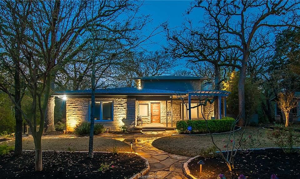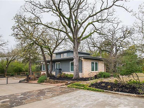 Completely renovated 3 bedroom, 3 bath multi-level home on .41 acres minutes from TAMU. Uniquely filled with character and attention paid to every detail, this house is a must see! Refinished original wood floors & all new appliances, windows, wiring, HVAC, roof, insulation, fixtures, and much more. Wow guests with their separate upstairs suite. The open kitchen/living area, multiple outdoor patios with quiet majestic views are great for entertaining. The bonus wine/cigar room below makes for great getaway. Situated on a large wooded lot, this unique home features a private backyard, fencing, sustainable landscaping, and a garden. The private gate & drive lead to a large, rear entry carport.