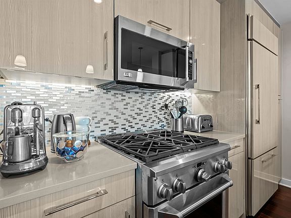 Discover modern luxury living at its finest in this stunning 3 Bedroom / 3 Bathroom residence at the prestigious 1200 Avenue at Port Imperial. Spanning 1,733 SqFt, this sophisticated home offers sweeping northern exposure with breathtaking views of the NYC skyline and Hudson River. Step inside to find an expansive open layout with floor-to-ceiling windows, gleaming hardwood floors, and a private balcony perfect for entertaining or unwinding with a view. The chef’s kitchen is designed to impress, featuring GE Monogram appliances, Caesarstone and Italian porcelain countertops, custom cabinetry, and a breakfast bar. The luxurious primary suite boasts a spacious walk-in closet and spa-like ensuite with soaking tub, glass-enclosed shower, and double vanity all complemented by stunning city views. Two additional bedrooms and full bathrooms provide comfort, privacy, and versatility for guests or a home office. Residents of The Avenue Collection enjoy an unmatched lifestyle with 24-hour concierge service, a state-of-the-art fitness center with steam rooms and sauna, library lounge, cinema room, children’s playroom, skyline social lounge, outdoor pool, firepit, cold storage, and more. With garage parking and the NY Waterway Ferry just steps away, this home offers the ultimate blend of luxury and convenience along New Jersey’s Gold Coast.