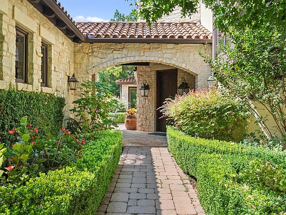 Located in the exclusive gated enclave of Watersmark, this elegant residence offers a rare blend of refined design, privacy, and a coveted setting along the renowned Fazio Foothills Golf Course. Reminiscent of a storybook Carmel Cottage, the home is surrounded by lush English garden landscaping, fountains, and an inviting courtyard that sets a timeless and welcoming tone. The courtyard entry features mature gardens, a central fire pit, and potential golf course views. The two-car garage also opens to this space, creating a versatile covered area ideal for entertaining. Inside, soaring beamed ceilings, limestone accent walls, clerestory windows, and travertine flooring define the main living area, while walls of glass showcase tranquil garden views and natural light. The formal dining room connects seamlessly, perfect for gatherings both intimate and grand. The chef’s kitchen features custom cabinetry, granite countertops, a large island, 6-burner Thermador range, Sub-Zero refrigerator, wine fridge, and copper sink, complemented by a water filtration system and walk-in pantry. A bright breakfast room surrounded by windows completes the space. The lower level offers a versatile secondary living area with wood floors—ideal as a media room, study, or office—plus two secondary bedrooms sharing a well-appointed bath, one with its own private covered patio. The upper level reveals a stunning library with built-in shelving and golf course outlooks, along with the oversized primary suite. This private retreat includes custom built-ins, a coffee bar, wood floors, and walls of windows. The spa-inspired bath boasts a Jacuzzi tub, walk-in shower, dual vanities, and an expansive California-style closet.
