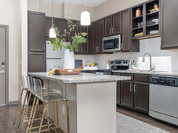 - Exterior features: , 24/7 Online Customer Service and Rent Pay Portal, 42" Kitchen Cabinets with Adjustable Shelving, Apartment Homes with Towering 14' Ceilings, Approximately 3 miles to Rebsamen Golf Course, Murray Park and Big Dam Bridge, Barbecue, Bicycle storage, Built-in Spice Rack, Ceramic-Tile Bathrooms, Chef Style Kitchens with Granite Countertops, Complimentary Wi-Fi and Coffee, Courtyard, Coworking Space, Desirable Riverdale Location, Double Basin Vanity, Eat in Kitchen Islands with Pendant Lighting, Exterior Type: Conventional, Fire Pits with Seating, Free Weights, Goose Neck Faucet with Pull Down Sprayer, Granite Countertops, HardwoodFloor, High-End Appliances, Key Fob Building Access, Large Windows, Lawn, Lofty 9 1/2' Ceilings, Media Niche with USB Ports, Onsite Emergency Maintenance, Package Receiving, Pet Washing Station, PetsAllowed, Plush Bedroom Carpeting, Private Meeting Room, Professionally Managed by Arlington Properties, Rent Payment Options offered by Flex, Resident Social Events, Rich Wood Tone Cabinetry with Brushed Nickel Pulls, Short Term Lease, Shuffleboard and TVs, Soaker Tubs with Curved Shower Rods, Studio, 1, 2, and 3-Bedroom Homes, Subway Tile Kitchen Backsplash, TV Lounge, Valet Dry Cleaning Service, Yoga & Indoor Cycling Center w/TRX Bands