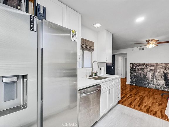 Nicely Remodeled Two Bedroom Ground Floor END UNIT Condo! Gourmet Kitchen has Updated Cabinets, Updated Samsung Stainless Steel Appliances and Quartz Counters, Accent Walls throughout, Spacious Dining Area, Large Living Room with Fireplace which opens to Enclosed Patio area, Custom Wood Flooring throughout Updated Nest Controlled Central Air and Heat. Double Doors open to Bedroom with lots of closets! Master Bedroom has adjustable level recessed lighting and also has HUGE Walk In Closet. Vanity area with Quartz counters and Private Full Bath, Resort Like POOL AREA with Spa and Clubhouse, Covered parking space is 291, also an additional uncovered space, just steps from Condo, Tustin School District , Walking distance to Parks, Shopping, Entertainment and easy access to 5 and 55 Freeways, 10 Minutes to Beautiful Newport Beach.