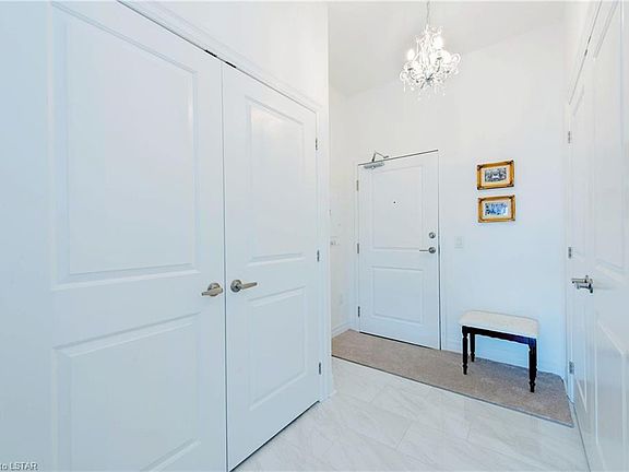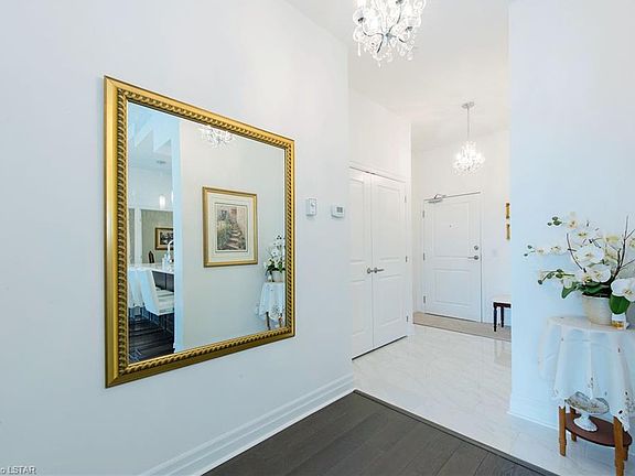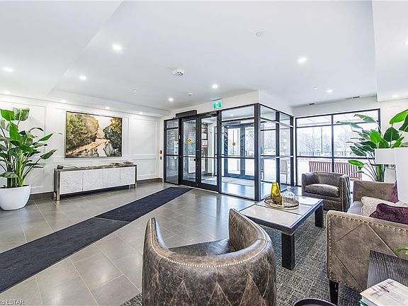 Are you seeking an upscale condo lifestyle without the noise and congestion of downtown? Then act fast as you can't get much better than ParkWest-a gorgeous, Tricar building in the heart of desirable and welcoming Byron. This top floor unit even overlooks scenic Springbank Park! Imagine just crossing the street to take in 140 hectares of nature stretched along the Thames River. Or take a short walk to do some shopping or dine at a restaurant. This bright condo boasts 2 bedrooms plus a den (currently used as a dining room), 2 full baths (with heated floors!), quartz countertops, an abundance of cabinets and a pantry, upgraded stainless steel appliances and lighting, 9' ceilings, crown moulding, expansive windows with custom blinds to enjoy the beautiful view and let in an abundance of natural light, an oversized balcony, closet organizers in both bedrooms and laundry room walk-in closets, engineered hardwood, 2 underground parking spaces, a storage locker, and the list goes on! Then there are the fantastic amenities this complex provides such as a gorgeous social room with a bar area and billiards, golf simulator, a guest suite, outdoor patios, and a fully equipped fitness studio. All this, as well as heat, air conditioning, hot and cold water, are included in the low condo fees! Are you ready for stress-free homeownership in an area that encourages long walks in nature and relaxing dinners on a local patio? Look no further-you're home!