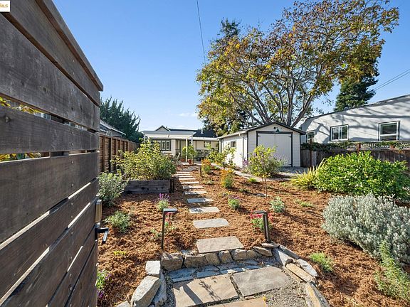 With an ideal North Berkeley, 1200 Cornell is a stone throw from the Westbrae Nursery, Berkeley Bagels, Headlands Brewery, Adego Azul wine bar, and three.one four Pizzeria! Through the private front gate you are greeted by a lush garden teeming with fruit trees, veggie beds, native flowers, and a patio with trellis. Nestled in the garden is this sun-kissed bungalow with original craftsman porch beckoning you to sit and rest a while. Inside is a charming and remodeled one bedroom home. The open floor plan features a spacious eat-in kitchen with stainless steel appliances, quartz countertops, and a sunny breakfast nook. Separate, but seamlessly connected, is the large living room looking out to the garden. Rounding out the main house is the private one-bedroom and cheery remodeled bathroom. Just a few steps away is the detached garage with laundry. With insulated and finished walls, this space makes an ideal home office or potential ADU. Below the home is a large storage room providing space for everything. In 23’, plans were drawn up and permits approved for a larger home. Those plans are available to the buyer if they want to bring the plans to life. Sewer compliant, BESO compliant, $600 pest inspection, newer roof, and so much more!