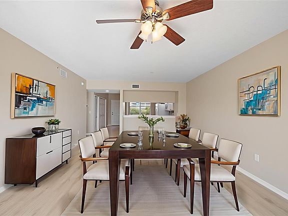 One or more photo(s) has been virtually staged. Come experience resort-style living at its finest with NO WORRIES about hurricane impacts—these condos are both ELEVATED and built with SOLID CONCRETE CONSTRUCTION for maximum security and peace of mind! Milestone Inspection Studies are 9 years away, and the SIRS (Structural Integrity Reserves Study) has been completed for Building Six, confirming it is in excellent financial and structural condition with NO planned assessments. This move-in ready 2-bedroom, 2-bathroom condo offers breathtaking panoramic views of the serene lake, lush golf course, and vibrant Florida sunsets. Inside, you’ll find freshly painted throughout open-concept living room, dining area and brand new Luxury Vinyl Plank flooring throughout. The kitchen has newer appliances. Designated parking space conveniently located out front of the building The west-facing 140 sq ft covered and screened balcony is accessible from both the living room and primary suite—perfect for enjoying sunsets and year-round outdoor relaxation. The expansive primary bedroom retreat offers his-and-hers walk-in closets, a luxurious ensuite bathroom with double vanities, an oversized walk-in shower and a private toilet closet. A split-bedroom layout ensures privacy, and the versatile second bedroom easily accommodates guests, a home office, or a combination of both. Additional conveniences include an in-unit laundry closet. A new roof was completed last year, and the low HOA fee includes PROPERTY INSURANCE, cable, internet, water, exterior maintenance, and more. Residents enjoy a heated pool, hot tub, resort-style clubhouse with kitchen and meeting room, and pet-friendly policies (2 pets up to 25 lbs for owners only). Minimum rental period is 3 months, making it ideal for primary residence, seasonal living, or investment income. Best of all, East Bay Golf Course is right outside your door—NO country club membership required—and you’re just 10 minutes from the sugary sands of the Gulf beaches, close to restaurants, shopping, and a quick drive to Tampa or St. Pete. This is resort living made easy in a quiet, desirable Pinellas County community. Don’t miss your chance to live your best Florida lifestyle!