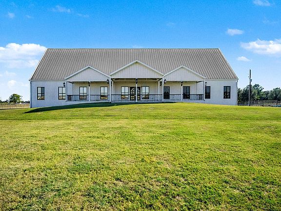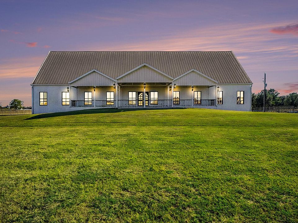 Experience refined country living in this 8,100 sq ft custom estate on 3.5 unrestricted acres. This architectural gem features vaulted ceilings, Brazilian and oak inlaid floors, marble baths, a fossil limestone laundry and guest bath, and designer doors. The chef’s kitchen shines with cobalt cabinetry, dual islands, granite/marble counters, and custom lighting. Enjoy elegant entertaining with stained glass accents and wide porches. Includes a newly painted 7 stall concrete/stucco barn, 3 car garage, commercial windows, 12” side insulation, State wind rating Cat. 2 (115mph) building/roof, and never flooded. Crushed asphalt and concrete driveway from public road to 360 deg around home. Perfect for a private retreat, equestrian use, wedding venue, or commercial use, with expansion up to 30 acres total. Davenport Parkway is scheduled for future expansion through FM 521 (Almeda Rd), enhancing access and value showings by appointment only; proof of funds or lender pre-approval required.