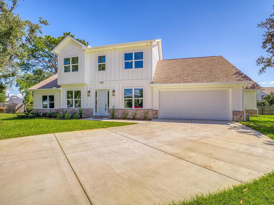 CONSTRUCTION COMPLETE!!! Looking for a unique custom built home in the Tiger Point Area of Gulf Breeze? Look no further - built by one of the premier builders in Northwest Florida. This 2 story beauty is over 3400 sq feet of living space within a cul-de-sac. There are 2 main suites - one upstairs and one on the first level - both with amazing finishes, walk-in closet, double vanity and walk in tile showers. Downstairs even has a free standing soaking tub and water closet! There are 2 bedrooms with jack & Jill bath, main suite, office and powder room on the first level and 3 bedrooms - 2 are HUGE, 2nd main suite with amazing bath and additional full bath upstairs. The living room has a 19.5 ft ceiling open to the 2nd floor and flows through to the kitchen and dining room. Plenty of oom to spread out. The kitchen features quartz countertops, tons of cabinets, center island with sink, disposal, dishwasher, additional electrical outlets, wall oven/microwave, gas stovetop and 2 windows overlooking the backyard. The island has room to seat 6 comfortably and the dining room overlooks the back covered patio. The pantry has solid shelving and a barn door for space saving easy access. There is a gas stove, gas-tankless water heater and gas plumbing to the back patio and on the side for future grill and possible generator. There is an oversized 2 car front entry garage and a sprinkler system on a well. This builder uses top of the line finishes, impact glass windows, high end appliances, luxury vinyl plank wood look flooring, 8ft doors and solid wood shelving - no wire shelving here. There is PLENTY of room in the back yard for a pool and renderings of a pool are in photos - while still keeping plenty pf grassy space to play or garden! Also ask about available concessions.