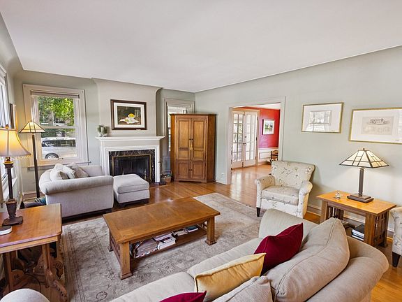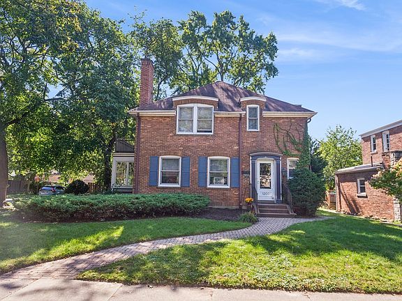 Nestled on an expansive corner lot in south Evanston this oversized Georgian has much to offer, including its location on a cul-d-sac. Circular flow defines the home's first floor, highlighted by gleaming hardwood floors and cove ceilings and moldings in the living room and dining room. The spacious living room with a wood burning fireplace has pretty tree lined street views while connecting smoothly to the south facing dining room fit for large gatherings. French doors from the dining room open to a four-season heated porch lined with windows. It provides easy access to the wood deck and fenced yard. Enter the kitchen, with stainless steel appliances, either from the dining room or the entry hallway. A custom island here is the hub, providing additional counterspace for food prep and casual dining. Enjoy views over the yard from the kitchen sink windows. Upstairs, off a graceful landing, are three generously sized bedrooms, each with two exposures. The primary suite across the front of the house has a unique bathroom setup but there also is plenty of room to reconfigure to your preference. The second bedroom features a French door to a potential rooftop deck waiting for a refresh. This bedroom has ample space for a separate work/study/play area. Both the second and third bedrooms have walk-in cedar closets. The updated hall bathroom has a combo soaking tub with shower. Lower level access is off the entry foyer hallway. The partially finished basement with glass block windows offers opportunity for a redo based on your needs. The large lot also allows for expansion potential if the need dictates or major gardening opportunities. Location has easy access to the main east, west and north, south arterial streets, public transportation, and shopping. Home is AS IS.