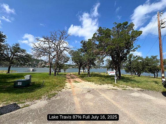 Price Just Reduced by over $100k! Bring us an Offer, Motivated Sellers!! Exceptional Deep Lake Travis Waterfront Property! This 5.244 acre parcel consists of 1.2 acres of buildable lakefront property plus an additional 4.03 acres that would typically be under water, much of it is currently exposed. Cleared, Unimproved lot with 355 Feet of Lake Frontage. The absolute Best Views and Lake Access! This property faces Northeast at the end of the cul-de-sac and you are graced with Southwest Lake Views- Allowing you to enjoy The Golden Hour with those iconic sunsets over Lake Travis in the evening! Quickly hop on the lake with Access from your own private Dock constructed in May 2023 including Boat and Jet Ski lifts, a storage closet with Generator and Dock/Roof Top Lounge area. Build your Dream Home or Vacation Style Lake House on this cleared lot- Electricity, water and city sewer available! Situated directly across from Briarcliff Marina makes for a very convenient spot to fuel your boat or jet ski's up with Gas. Boat or Paddle Board to The Lighthouse Restaurant across the Lake for dinner and music. Just a 15 minute drive to Lago Vista Shopping/Dining/Entertainment, 30 minutes to Leander and 30 miles to The Domain/Q2 Stadium. Highly Rated Lago Vista Schools! This is the chance of a lifetime to own 5+ acres of deep-Lake Travis Water Access, even during an exceptional drought. Refer to map for approximate property extents.
