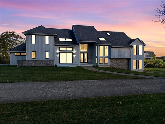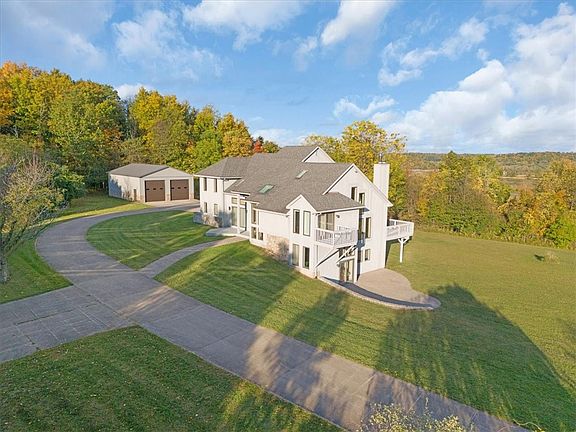 NATURE LOVERS AND HUNTERS PARADISE !!!! Views of Bristol Mountain ? Come check it out ! Tucked well off the road for total privacy, this stunning 1989 contemporary home sits on 70 wooded acres offering peace, beauty, and modern comfort. With over 3,400 sq ft of living space, it features an open floor plan, vaulted ceilings, and two wood-burning fireplaces that bring warmth and charm. The kitchen includes solid-surface countertops, an eat-in area, and all appliances Formal dining room, great room, den, study, and library provide flexible living options. Flooring throughout includes cherry hardwood, travertine marble, and plush carpet. Outdoor spaces include multiple decks, patios, and balconies overlooking a private yard. A 32x48 barn built in 2017 and a three-car attached garage add ample storage. Updated heat pump systems(2019) provide efficient heating and cooling. Public water and septic, with an additional well on site and to top it off 50 Year shingles . A true blend of seclusion and style perfect for nature lovers and those seeking space to live, work, and relax.