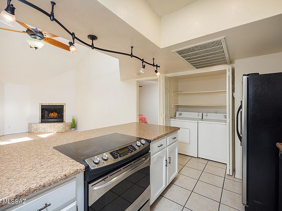Beautiful 2 bedroom 2 bath condo in the popular Northern Tucson community of Twelve Hundred River Road. This spacious property features high vaulted ceilings, with a light and bright ambiance. It has an open floor plan with split bedrooms, romantic wood burning fireplace. Recently remodeled, and freshly painted. New AC unit, new dishwasher Washer/dryer included. Convenient location close to UA, Banner Medical Center, farmer's markets, food, shopping ,entertainment, and Tucson's LOOP used for cycling, running, and walking. There is a resort style pool area with hot tub, exercise facility and recreation center. HOA fees cover pool, spa, landscaping, external maintenance, recreation and exercise center, water, sewer, and trash. Covered parking space is also included.