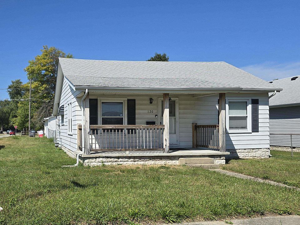 Cute 2 bed, 1 bath bungalow featuring hardwood floors, applianced kitchen, Large living room, separate dining room, and a laundry/utility room. Situated on a corner lot, the fenced back yard offers a great outdoor space for pets & play. The covered front porch is a great place to sit and enjoy friends, family and neighbors too! Property includes a detached oversized 1 car garage—perfect for extra storage or a workspace. Move-in ready with great curb appeal! Would be a great starter home or investment property.