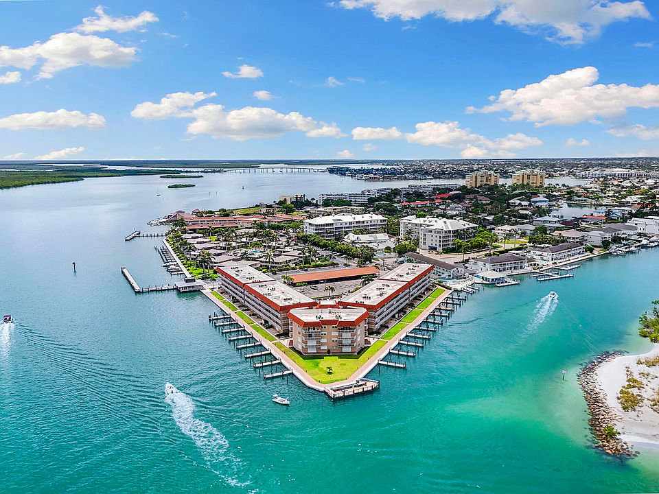 Perched overlooking the Marco River, this fully furnished 2-bedroom, 2-bath condo captures a front-row seat to the daily dance of dolphins, passing boat traffic, and serene Gulf-bound waterways. Enjoy a wraparound balcony that frames the ideal vantage point to watch boats navigate from the river to open Gulf waters — a true boater's paradise.