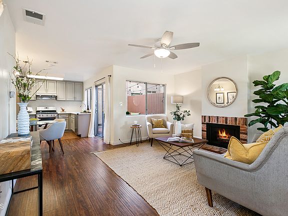 Located in the lovely Grapevine community, this remodeled two-level townhouse has been impeccably maintained and is move-in ready! The front door opens to a welcoming living room with cozy fireplace and windows allowing natural light to fill the space. The adjacent dining area has access to the private patio - perfect for relaxing & entertaining - and the kitchen features quartz counters, newer stainless-steel appliances, and plenty of cabinet space. The main level also includes a convenient powder room. Upstairs is the spacious main suite with wall of closets, a full bathroom with shower over tub, and second bedroom. The unit has central A/C and an attached 2-car garage with laundry hookups. A short distance to shops, delicious restaurants, and more, this townhome truly has it all!