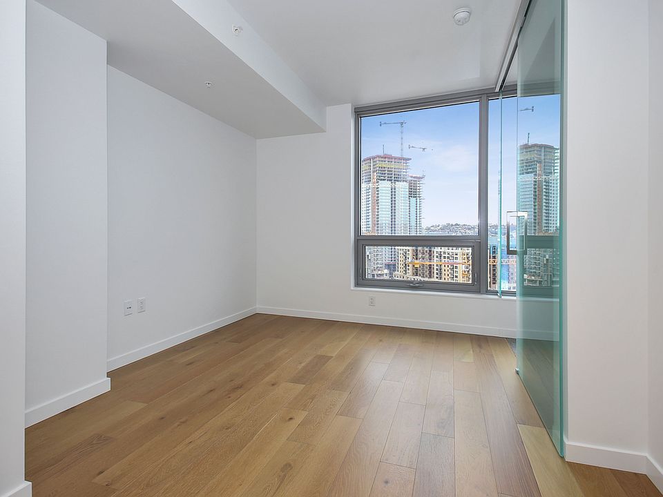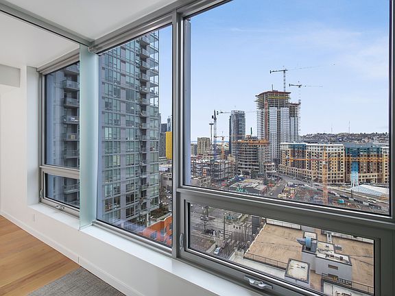 Nexus-City Life. One of Seattle's newest high tech, modern condos to provide an all in one, seamless integrated home and building automation experience-one app with infinite possibilities. New 1 bedroom, 1 bath boasts upgrades with an easy flowing floor plan. Spectacular Seattle skyline and mountain views from the 20th floor. Secured parking with 1 storage unit. 3 floors of amenities including media room, gym, yoga studio, pet lounge, private kitchen area and co-working area. 24 hour concierge services.