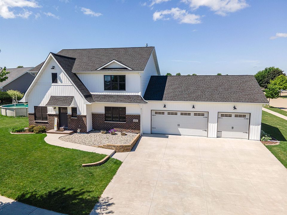 Desirable Kimberly Home! Step inside this beautiful contemporary home with the living rm greeting you with soaring ceilings & gas fireplace that makes an impressive first impression. The open concept flows into the kitchen which features a farmhouse sink, center island with an attached dining room table and a huge pantry area. The primary bedroom conveniently located on the main floor boasts your private bathrm with dual sinks and a tiled walk-in shower. An inviting office area, ½ bath and a well-equipped laundry room complete the main flr. Wrought iron handrails leads you to upstairs to 3 bedroom, 2 of which feature walk-in closets. Main bathrm includes dual sinks and a private shower area. LL provides an egress window, stub for a bathrm and stairs leading to the attached 3.5 car garage