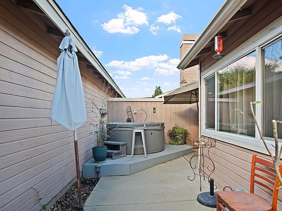 Step through the enclosed patio and immediately feel the fresh, open vibe of this modern retreat. As you enter, the living area unfolds with vaulted ceilings, bold stained concrete floors, and a layout that feels instantly inviting. The updated kitchen and bathrooms continue the contemporary feel, while vinyl flooring in key areas adds sleek durability. The primary bedroom opens through French doors to the patioperfect for relaxing mornings or unwinding evenings. Brick accent walls add stylish character throughout, and the in-unit laundry room brings everyday convenience. Dual-pane windows and a newer Lennox HVAC provide year-round comfort. A 2-car garage, convenient guest parking, and an HOA with fees lower than many communities in the areacovering roof, water, trash, sewer, exterior and ground maintenancemake ownership refreshingly simple. Hot tub and water softener included. The second bedroom flexes beautifully as an office or guest roommodern, move-in ready, and designed to impress.