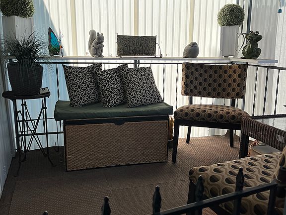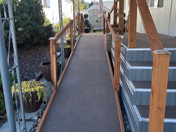 Ramp, covered back patio, large storage shed, covered parking. Club house, with laundry on site, dinners and weekly activities.