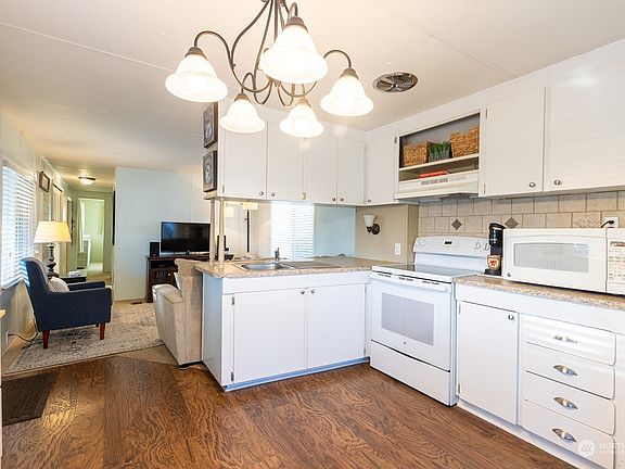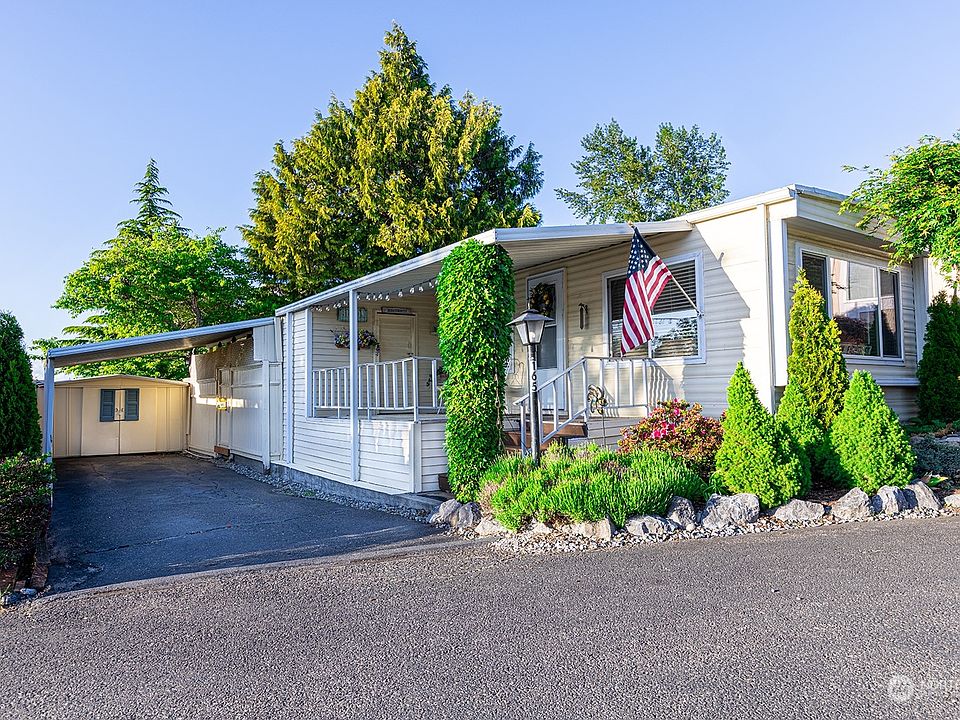 Very private tiny home with large living! Lakeway Estates, one of Bellingham's best 55+ communities! Great location in back of park near club house. Very private affordable well-maintained home has 2 bedrooms/1 bathroom. Light & bright open concept kitchen/dining & living room. Offers energy efficient windows & ductless mini split with A/C. Relax on the front covered porch or step out to a tranquil private fully fenced & partially covered backyard…Great for barbequing or pets. 2 sheds offer convenient storage. Low maintenance beautiful landscaping. Club House offers library, billiard room, kitchen, salon, community clubs & activities. Walk to shopping, groceries, bank, restaurants, coffee, public trans. & I-5 access