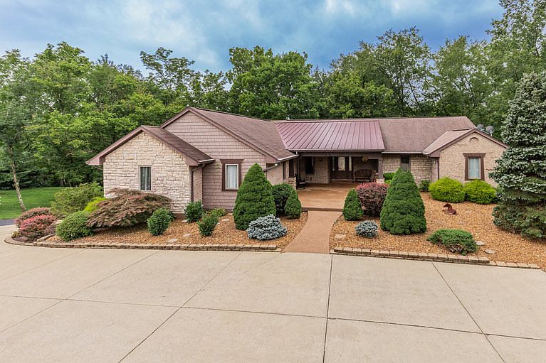 Gated Paradise. Masterpiece on over 5 gorgeous acres. Home features 4+ bedrooms (home has a separate living space under same roof) and has a potential 3 more in the lower level w/ additional kitchen (3 total kitchens). Detached 5 car garage with 2 rooms that have heating and cooling, dog kennel and another bath area. Can fit more cars than 5. In-ground pool at end of private drive.