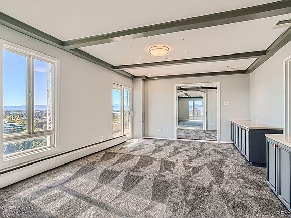 VIEWS! VIEWS! VIEWS! Less than a block from Cheesman Park, the views from this home are phenomenal! Over 25 years ago the homeowner purchased the condo next door and created this grand 2900+ 2 bedroom/3 bath 15th floor Penthouse home with 280 degree+ views that are visible through the floor to ceiling windows and from almost every room! These panorama views stretch north from Wyoming (on a clear day) west to the Rocky Mountains, south to Elephant Mountain, and east overlooking Cheesman Park! The unit is bright, airy and with lots of built in storage cabinets and closets throughout. The spacious Primary Suite has a sitting room area, built-ins and its own private bathroom. The secondary bedroom is also large and with its own private bathroom suite. The large living rooms has a fireplace, as does the family room plus a wet bar with a refrigerator. The kitchen includes such upgraded appliances as Thermador, Askew dishwasher, SubZero refrigerator, copper hood, and more. This home has been updated with new paint, new carpet, new fixtures and more! One of the large balconies is enclosed and can be used year round. The windows open and have screens so you can get plenty of fresh air! There are just too many amazing features in the unique property to list! HOA amenities include a pool that is currently being remodeled, a large outdoor patio with seating areas, workout room, and Community Room. The unit comes with 2 parking spaces in the underground garage and 2 storage units. This is a secure building with secure underground parking and 2 elevators. Close to major roads and bus lines it is located close to downtown Denver, Botanical Gardens, great restaurants and other Denver sites. You MUST SEE this home! Seller still has the floor plans from the original remodel. Seller may carry! Seller will lease this wonderful property for $5500/month.