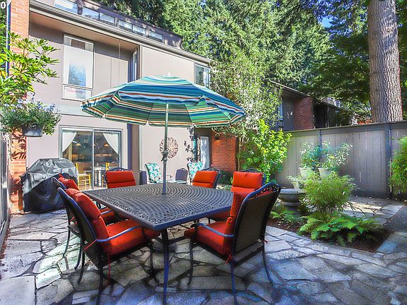 Charming & updated 3+1.5 end-unit townhome sits on verdant lot w/ breathtaking forest views. Vaulted ceilings w/ loads of natural light thru-out. Kitchen boasts brick floor, tile counters & NEW SS fridge & range. Flat, tranquil grounds meander about the gardens and green-space, beckoning guests to gather for a sip & story in large rear patio or private, fenced front courtyard! Bonus loft for home office, exercise, media or reading rm! Community offers heated pool, clubhouse, walking/bike paths!