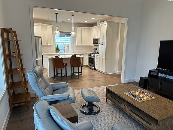 MLS# 273047 Welcome to the charming urban cottage nestled in the serene pocket neighborhood of Pullman's Kamiak Cottages. This impeccable 2-bed, 2-bath home boasts 1,176 sq ft of one-level living with a generous open floor plan and high-end finishes throughout. The kitchen is a chef's delight with upgraded cabinets, stainless steel appliances, quartz countertops, and tasteful tile backsplashes. Enjoy sunlight-filled meals in the dining area and relax in the bright living room featuring tall windows with custom blinds and a cozy fireplace. The open area features 11’ ceilings and upgraded luxury vinyl plank flooring throughout the home. This home includes a convenient laundry area for a stackable washer and dryer and a dedicated home office with a door leading to the side yard. The first bedroom has access to a full bathroom with quartz counters, while the primary bedroom boasts an adjoining bathroom with a tiled shower and a walk-in closet. Both bedrooms have custom, black-out blinds. Step outside to enjoy a custom, full-sized Trex deck looking out to the fully fenced-in backyard. The delightful front porch opens to the professionally landscaped front yard and a zero-maintenance common area. Additional features include a one-car garage with storage shelving, extra private street parking, and guest parking. Located close to Kamiak Elementary School and Pullman High School, this community provides access to a spacious clubhouse with a fireplace, dining table, and sitting area. The HOA takes care of trash removal, recycling, water for irrigation, snow removal to front door, and the upkeep and maintenance for the garage, common area, and club house--ensuring a hassle-free and enjoyable living experience.