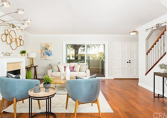 Here is the refreshing, open-floor layout everyone wants in a home, tucked away in the serene private resort community of Peppertree Village! Every room flows naturally from another--including the to-die-for balcony off the breakfast room and remodeled kitchen, plus the heavenly patio area off the living room. Fantastic upstairs balconies, too! You'll love the master suite, so spacious with plenty of closet availability. The entire complex is simply a gem: streams surrounded by dreamy landscaping, a gorgeous courtyard, pool and spa, subterranean garage and more. Tons of extras including fireplace, recessed lighting, beautiful flooring, glass sliding doors and convenient washer/dryer. This is an absolutely ideal location with walking distance to the beach and award-winning schools, with the safety of a security-gated complex. Do not miss this opportunity!