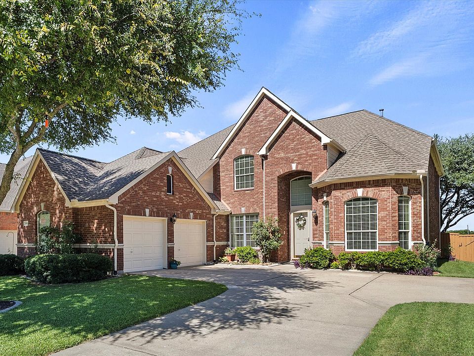 An expansive covered patio with composite deck sets the tone for relaxed outdoor living, offering peaceful golf course views and a space that is just as comfortable as the interior. This well-maintained home in Stonebridge Ranch is designed for year-round enjoyment, with thoughtful energy-efficient updates that keep it cool in the summer and cozy in the winter. From the moment you arrive, mature trees, beautiful landscaping, and a swing driveway create a welcoming feel. Inside, rich wood floors, soaring ceilings, and abundant natural light give the home a warm, inviting atmosphere. The formal living and dining rooms offer elegant spaces for gathering, while the open-concept kitchen and family room overlook the golf course, bringing scenic views into everyday life. The kitchen is both functional and stylish, featuring granite countertops, a large island with seating, stainless steel appliances, a gas cooktop with vented hood, under-cabinet lighting, and a walk-in pantry. A cheerful breakfast area includes a built-in desk and updated chandelier. The first-floor primary suite enjoys views of the golf course and includes crown molding, a ceiling fan, and a spa-inspired bathroom with dual vanities, a garden tub, a frameless glass shower, and a large walk-in closet. Upstairs, the open game room offers elevated views and is surrounded by three spacious bedrooms, each with walk-in closets, plus two full bathrooms including a Jack and Jill bath with dual sinks. The oversized garage features epoxy floors, attic access, and plenty of space for two vehicles plus a golf cart. Additional features include a 2021 roof, full exterior paint in 2024, and a new water heater in 2025 with a flood stop alarm. A transferable foundation warranty adds peace of mind.Located in McKinney ISD and close to shopping, dining, and the amenities of Stonebridge Ranch, this home offers a lifestyle of comfort, efficiency, and golf course beauty, both inside and out. FULL FEATURES LIST AVAILABLE