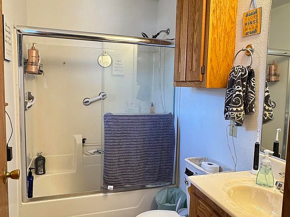 Spacious three-bedroom home featuring two full bathrooms, including a main-floor bedroom with an adjacent bathroom and convenient in-unit laundry. There is a two car garage.