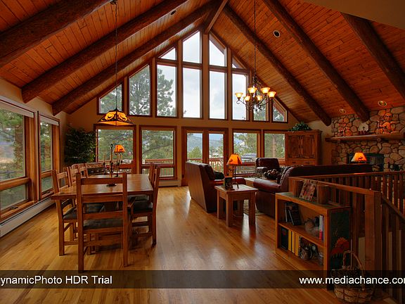 Beautiful spacious 2 1/2 acre home with Vacation Home Permit that allows for short term rentals and is transferable. Spectacular contemporary design featuring wonderful views with all the goodies including a 16x24 unfinished building ready to be turned into a guest home, artist studio, workshop! Huge great room with a full wall of glass and exposed structural logs looking toward Rocky Mountain National Park. Granite kitchen, oak floors, 16.5x29 multi purpose garage, Very private at the end of the road yet very close to town. Features all city utilities, paved drive, 5 zone hot water gas heat, 4 baths, 3 large bedrooms with 17x21 master suite with 5 piece bath and jetted tub. Large deck off the great room with spectacular views. Most of furniture is for sale is purchaser has interest.
