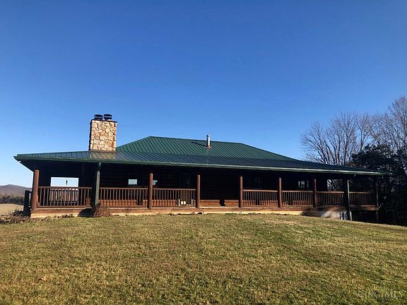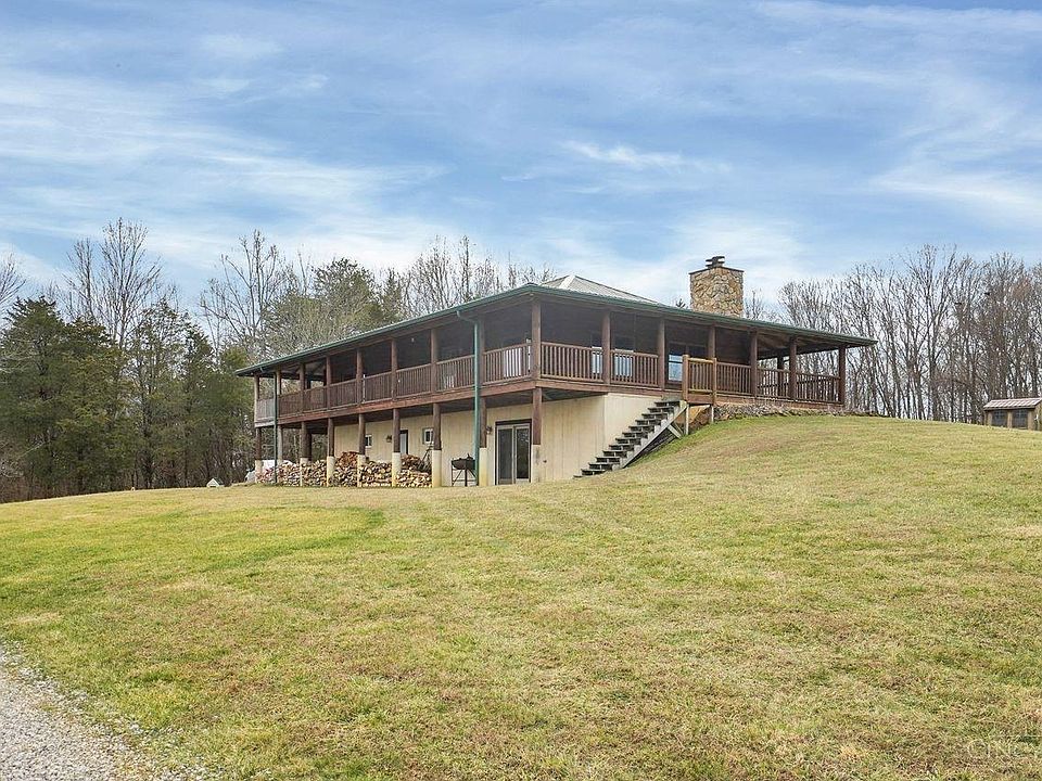 Relax on the wrap around porch of this Amish built log home, & view the diverse acreage, while watching a sunset. Approx. 35 acres farmed, fenced pastures for horses, along with 7 stalls in 60x136 stable, w/ water. 48x112 Pole Barn has an arena, & both have electric. All three structures have a metal roof, installed in 2016. Wooded acreage has logging trails throughout, which have been used for horse trails & hunting. One floor living ranch w/ 3 BR, 3 baths, 3 garages, & full finished basement.